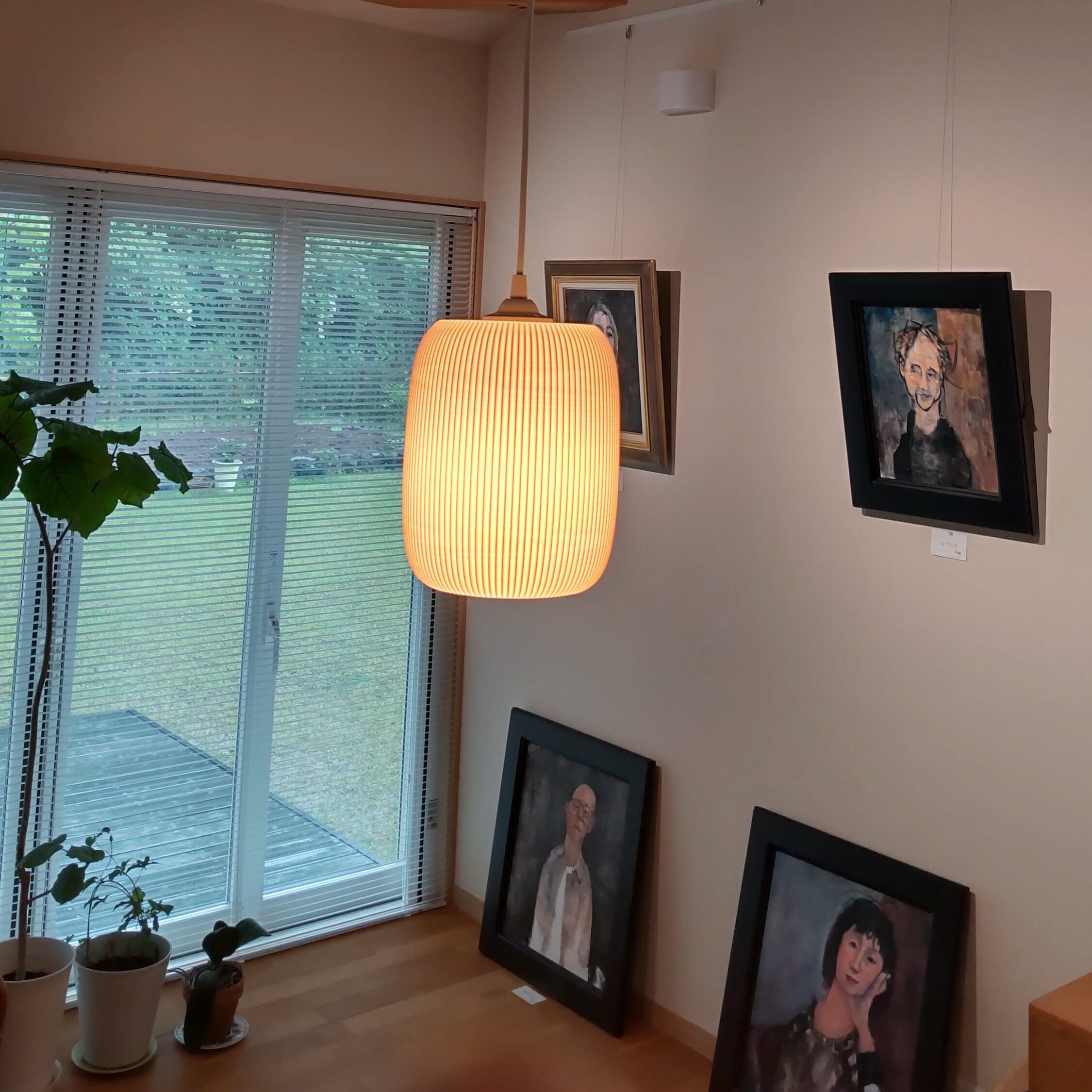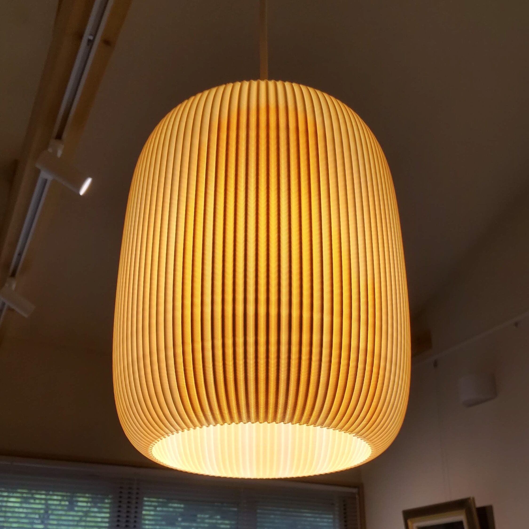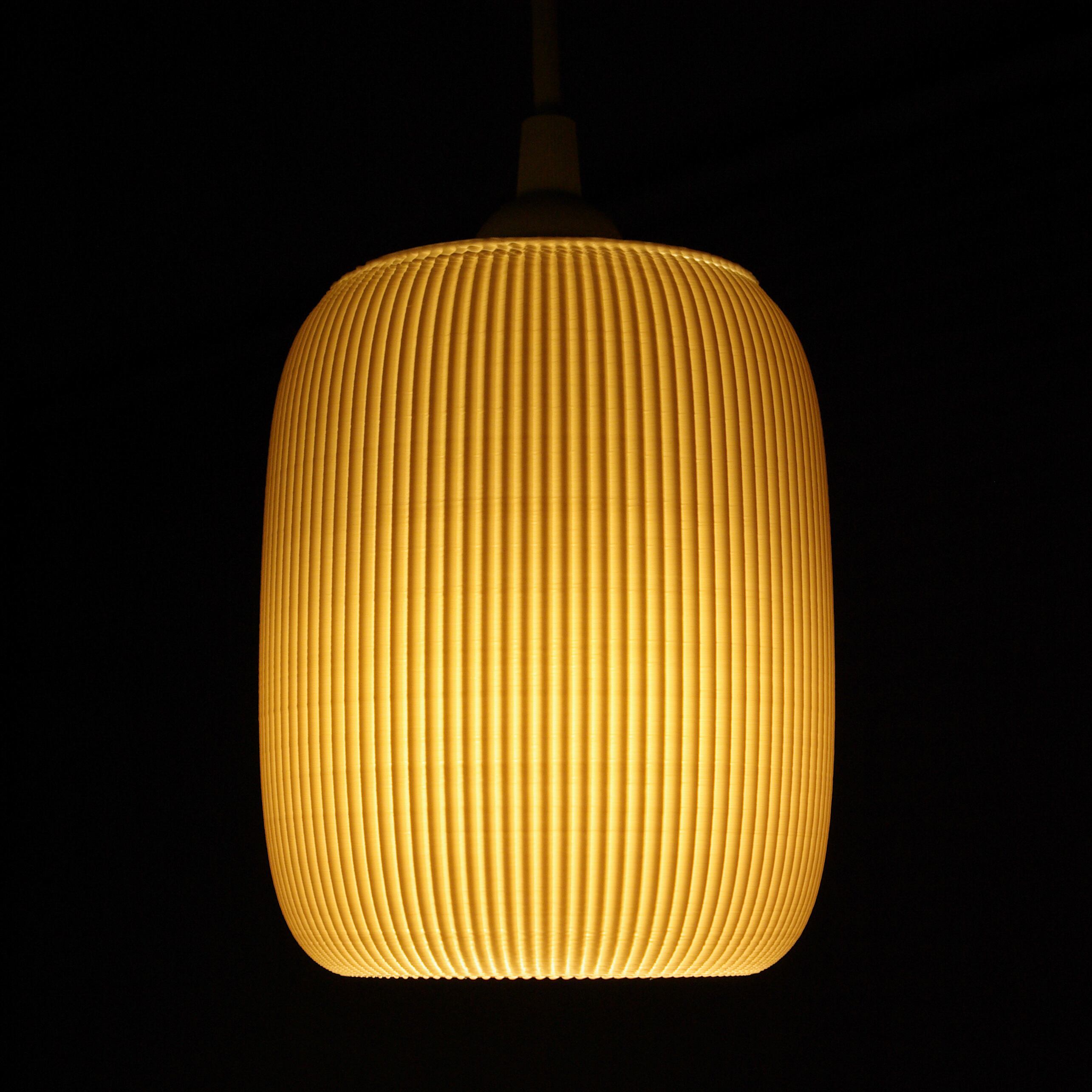 シェードは白色で、光を透過する材質ですので、色や明るさによって自在に変化します。