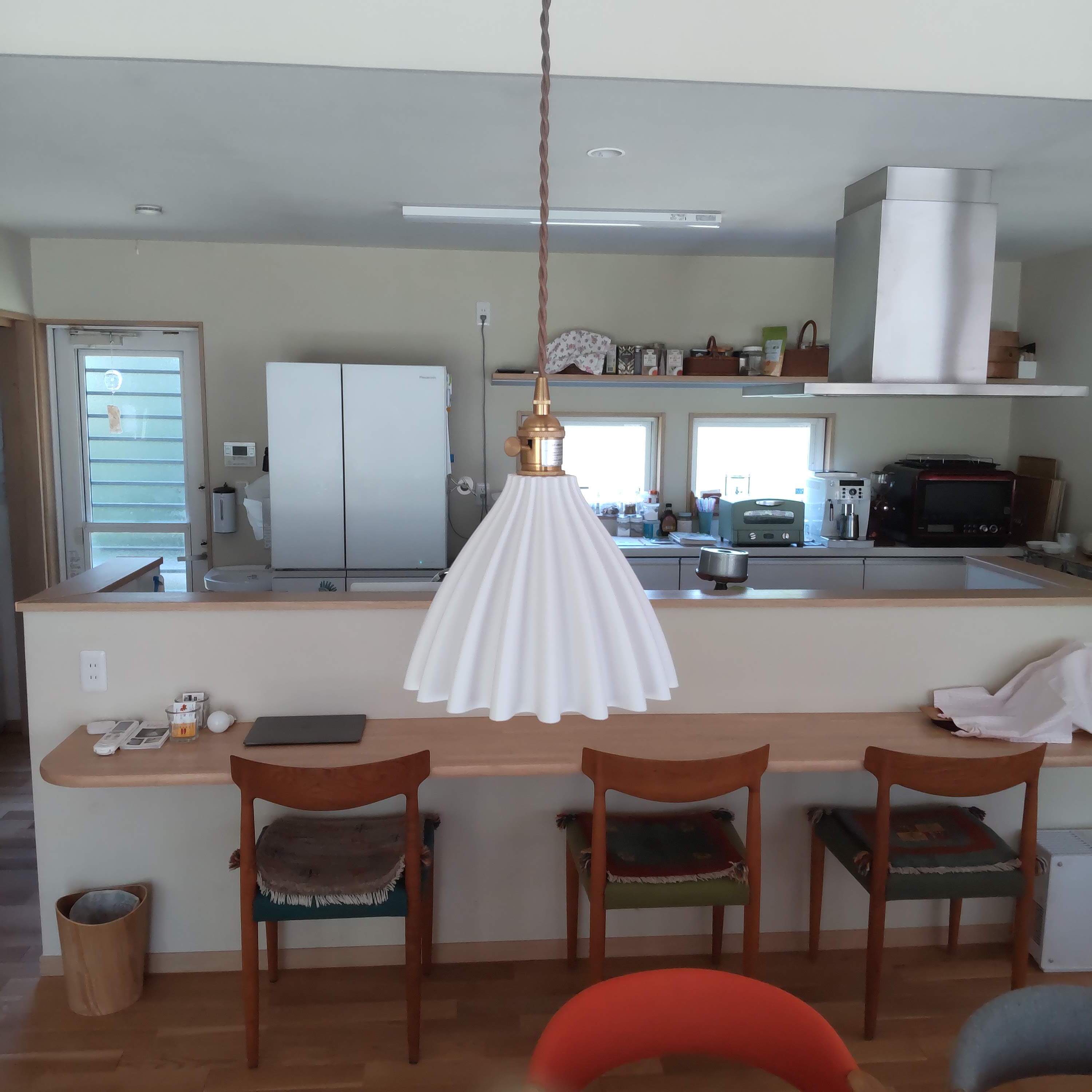 シェードは白色で、光を透過する材質ですので、色や明るさによって自在に変化します。
