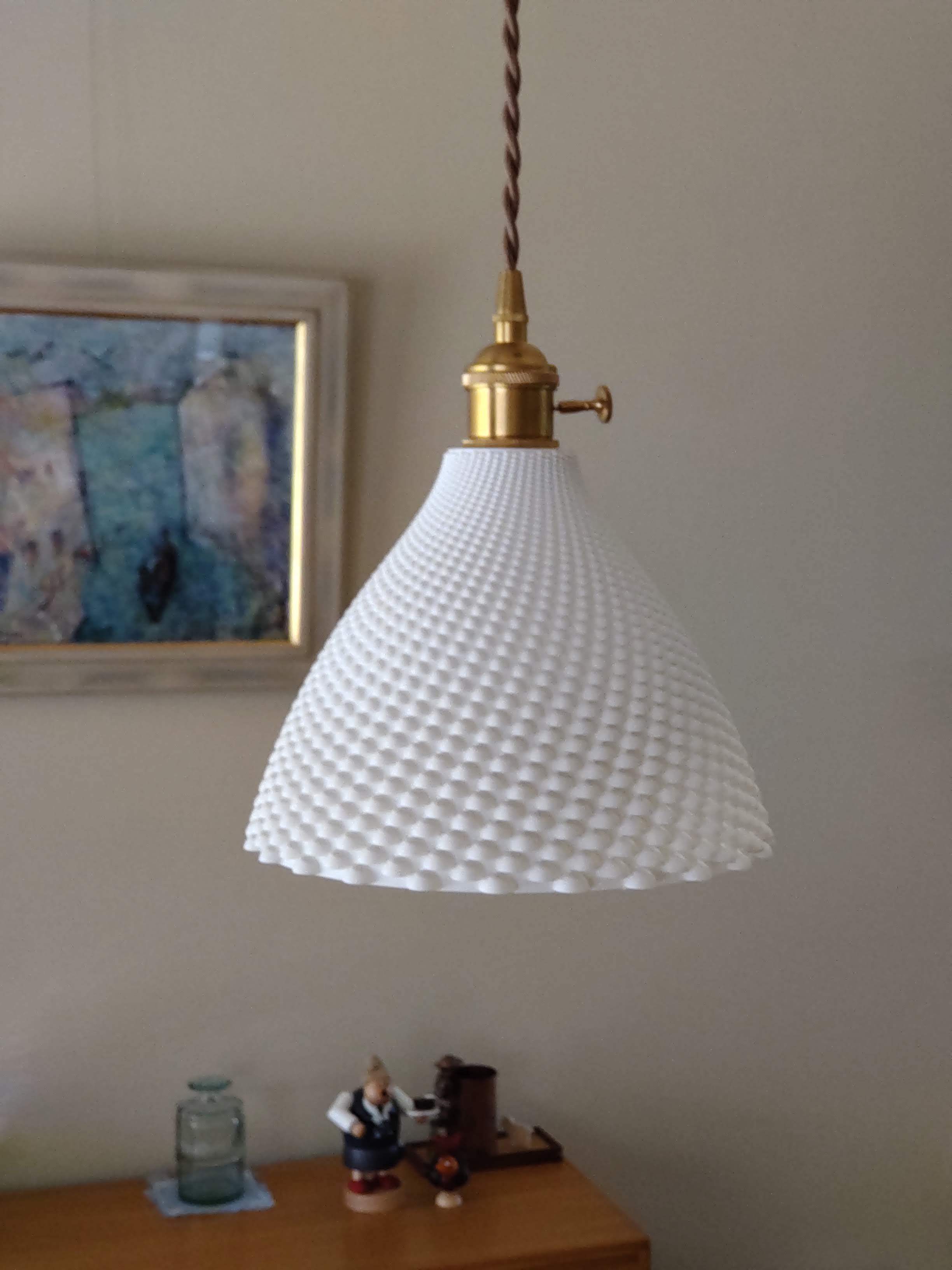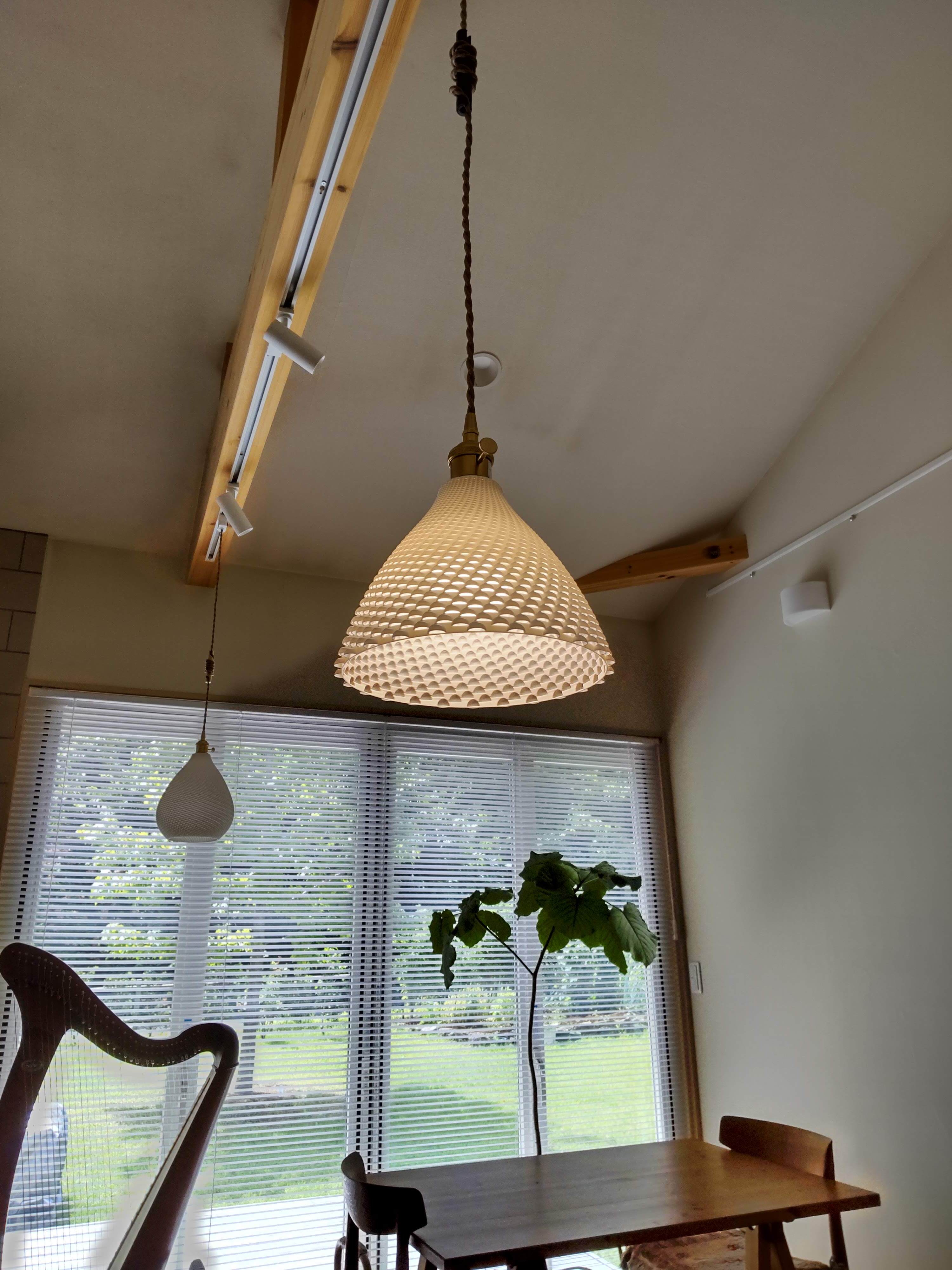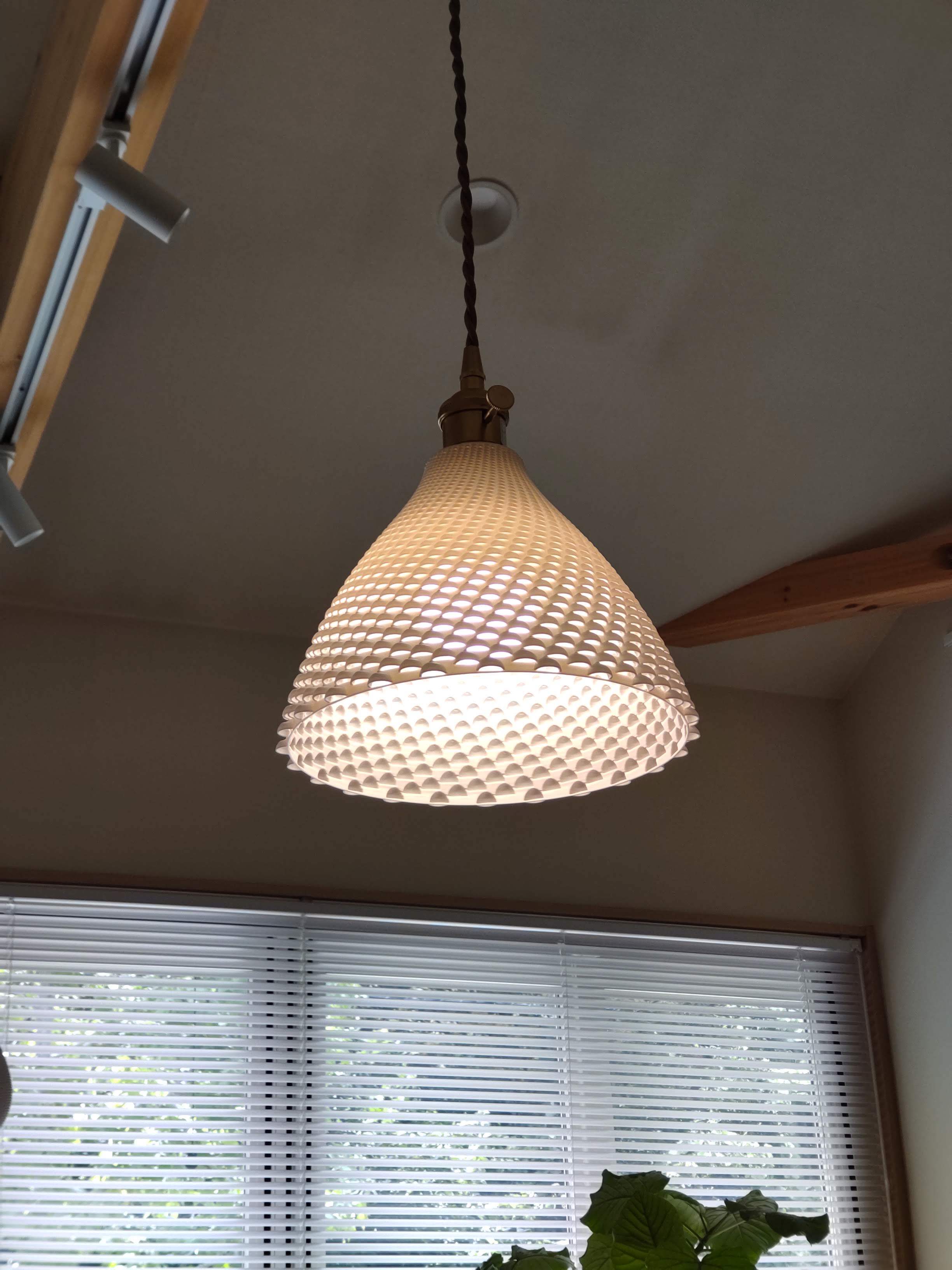シェードは白色で、光を透過する材質ですので、色や明るさによって自在に変化します。