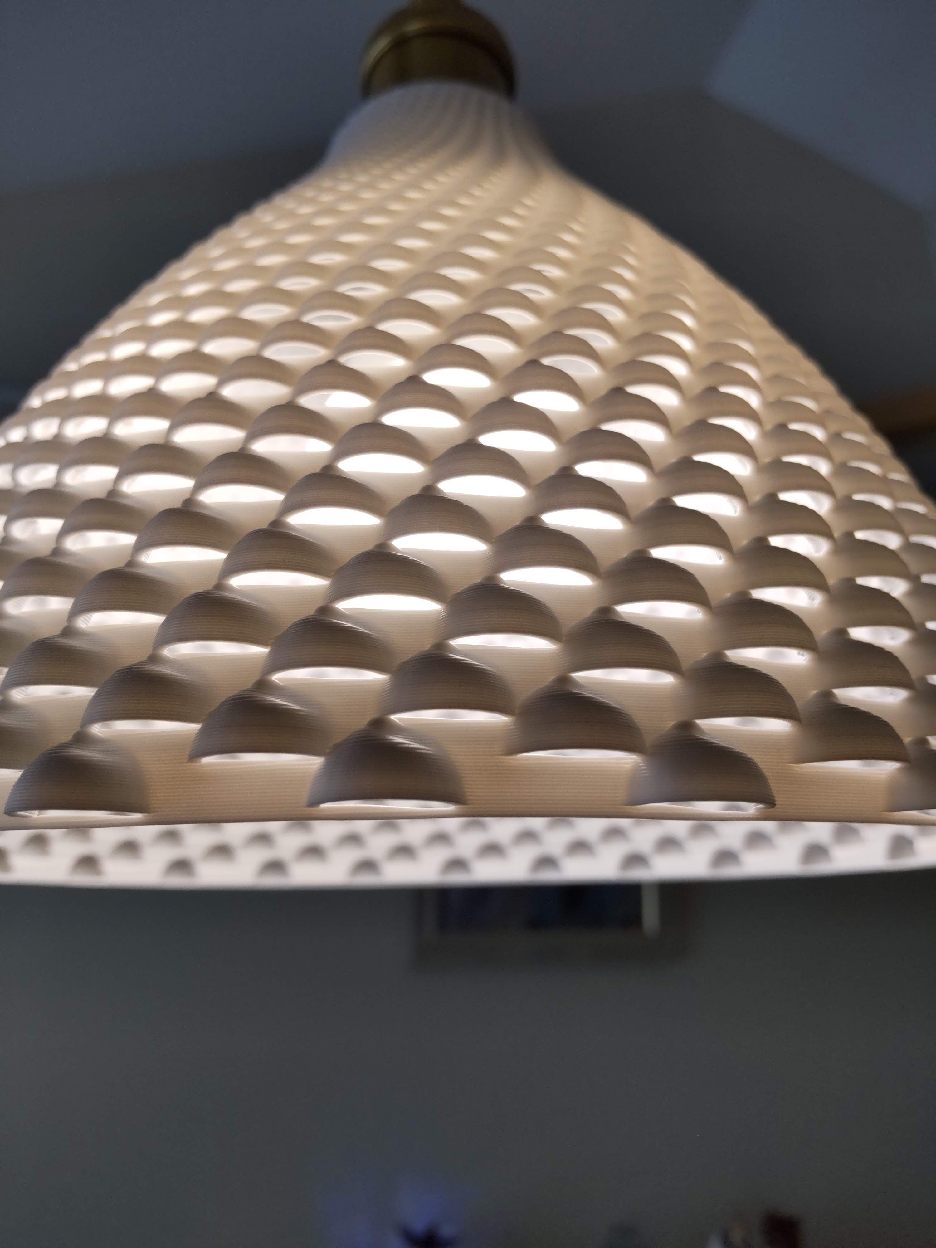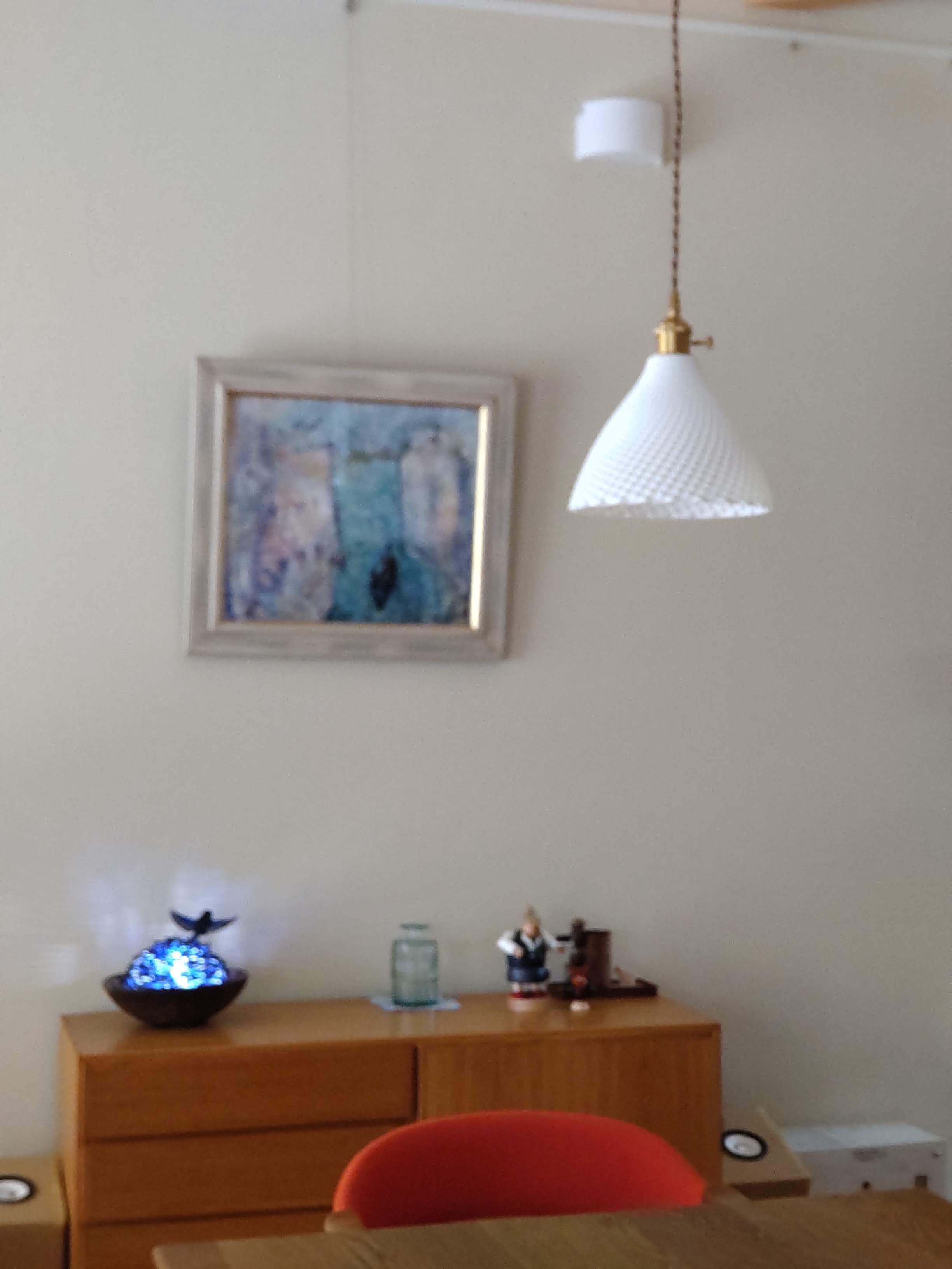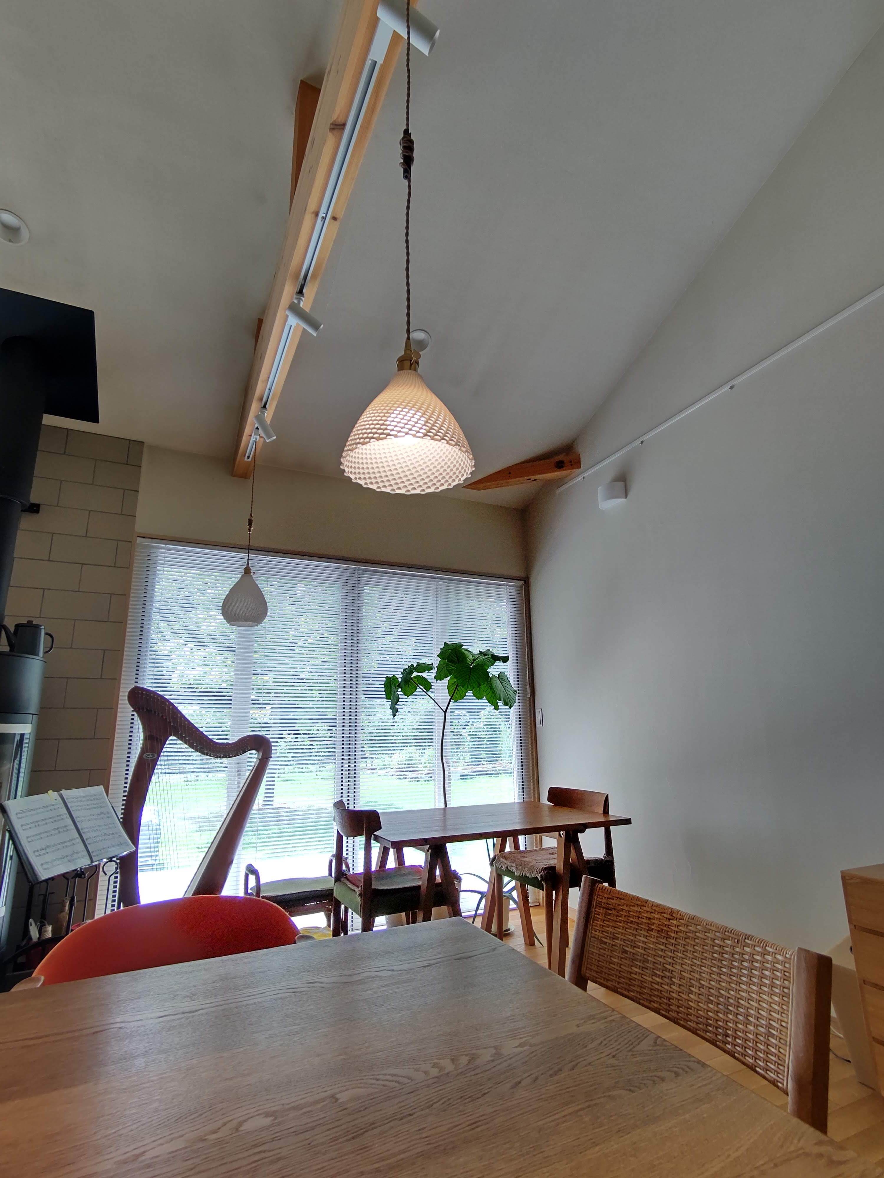 シェードは白色で、光を透過する材質ですので、色や明るさによって自在に変化します。