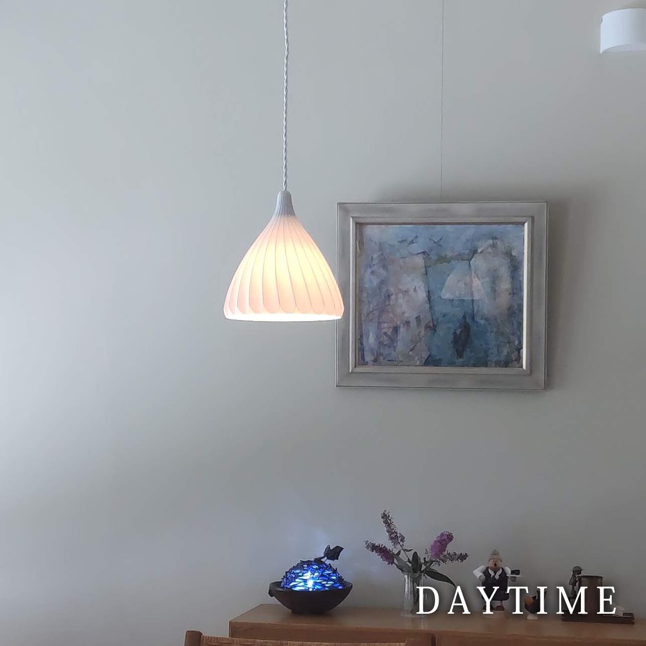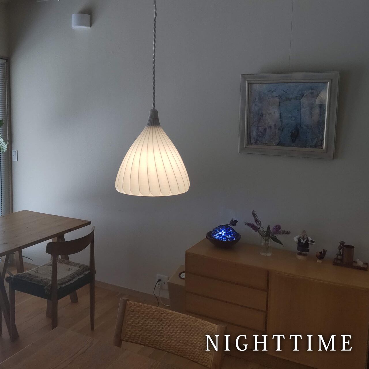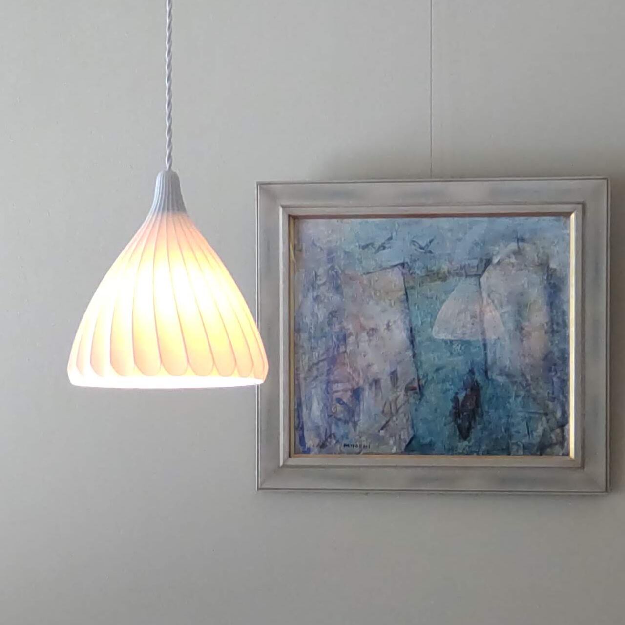 シェードは白色で、光を透過する材質ですので、色や明るさによって自在に変化します。